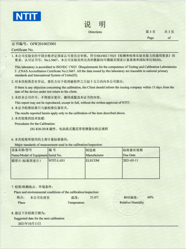 HRC華銳昌涂層測厚儀TC660是用來檢測涂層厚度的專業(yè)儀器,它能快速,無損,精準地進行涂、鍍層厚度的測量,具有可靠性高、穩(wěn)定性好、操作簡便等優(yōu)點,涂層測厚儀可無損地測量磁性金屬基體(如鋼、鐵、合金和硬磁性鋼等)上非磁性涂層的厚度(如鋁、鉻、銅、琺瑯、橡膠、油漆等) 及非磁性金屬基體(如銅、鋁、鋅、錫等)上非導(dǎo)電覆層的厚度(如:琺瑯、橡膠、油漆、塑料等),儀器主要應(yīng)用于制造業(yè)、金屬加工業(yè)、化工業(yè)、商檢等檢測領(lǐng)域,是材料保護專業(yè)儀器。HRC華銳昌涂層測厚儀TC660國家計量測試中心國檢檢測報告SCM CNAS NTIT校準證書。http://m.eb118.com/