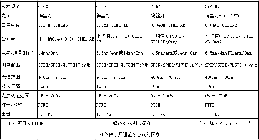 愛色麗Ci6x系列分光測(cè)色儀技術(shù)參數(shù)表: