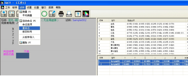 同時可以通過“試樣->重命名/刪除”對測試試樣進(jìn)行重命名和刪除操作。