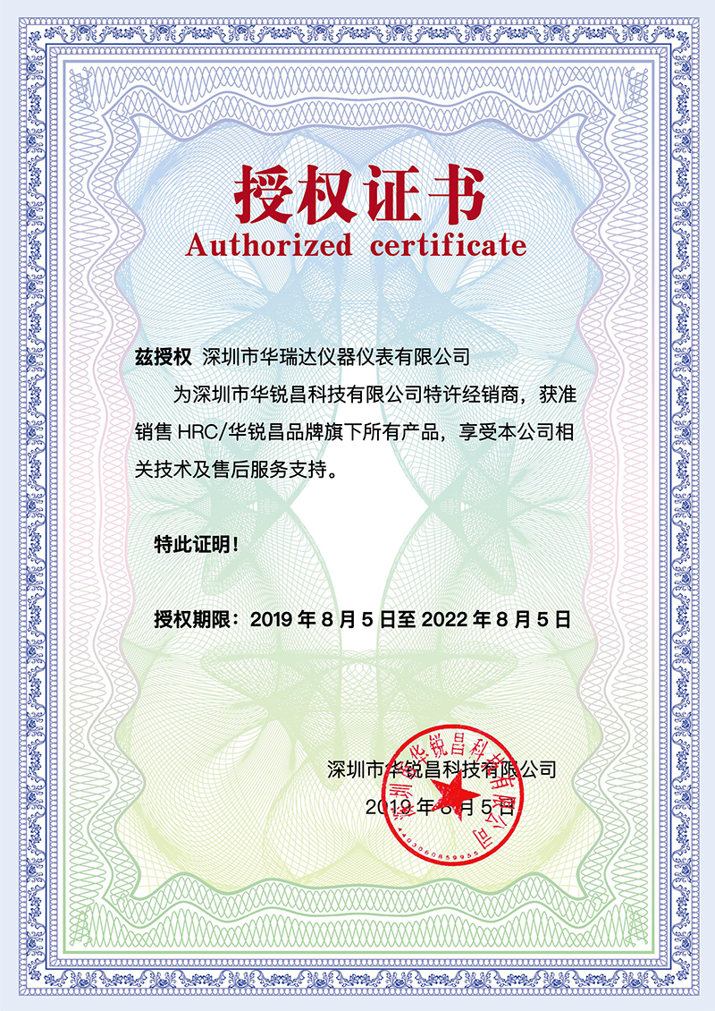 深圳市華銳昌科技有限公司建立了戰(zhàn)略合作伙伴關(guān)系,深圳市華瑞達儀器儀表有限公司成為深圳市華銳昌科技有限公司的特許經(jīng)銷商,獲準銷售HRC/華銳昌品牌旗下所有產(chǎn)品,享受本公司相關(guān)技術(shù)及售后服務支持。