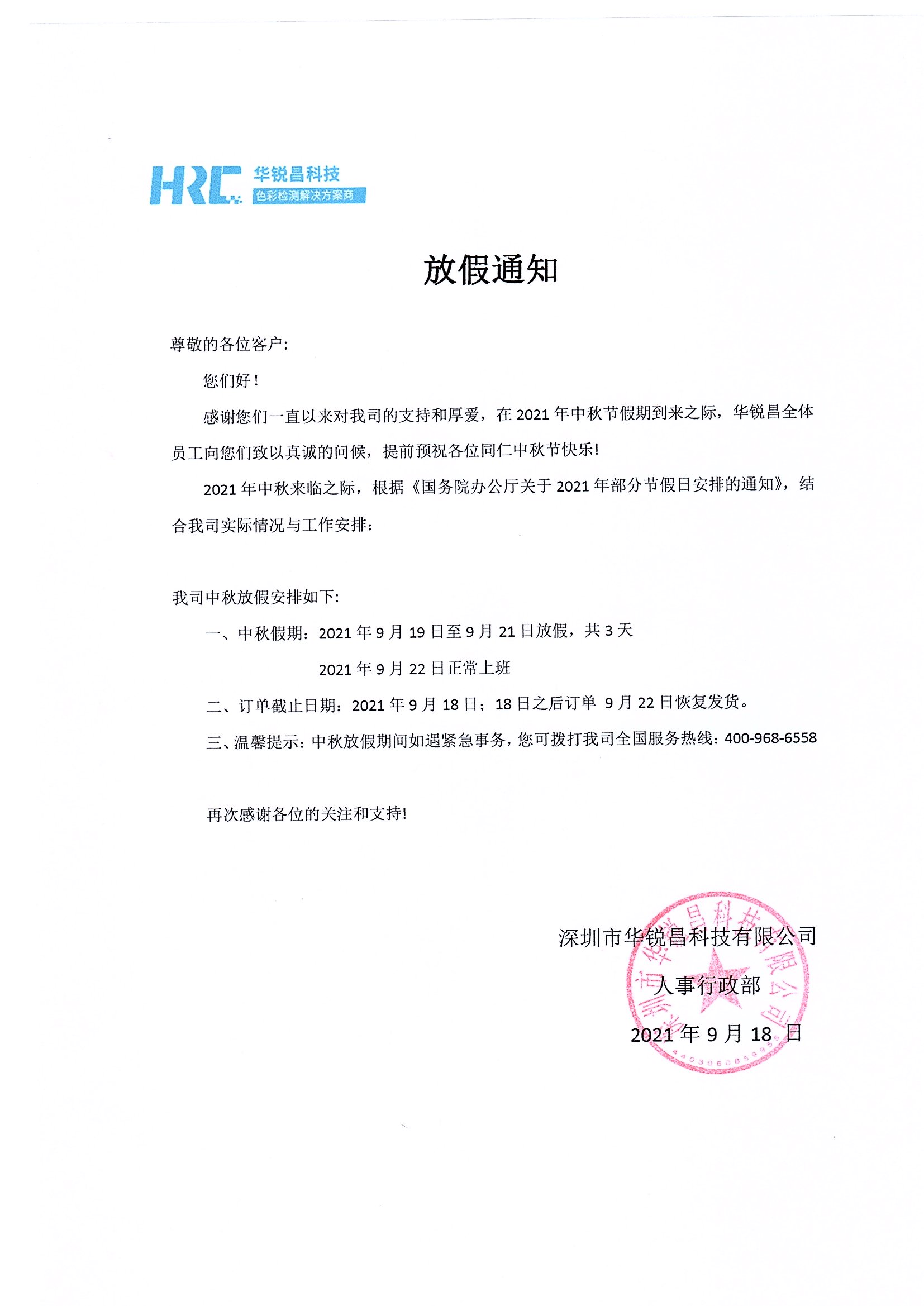 三、溫馨提示:中秋放假期間如遇緊急事務(wù),您可撥打我司全國(guó)服務(wù)熱線:400-968-6558