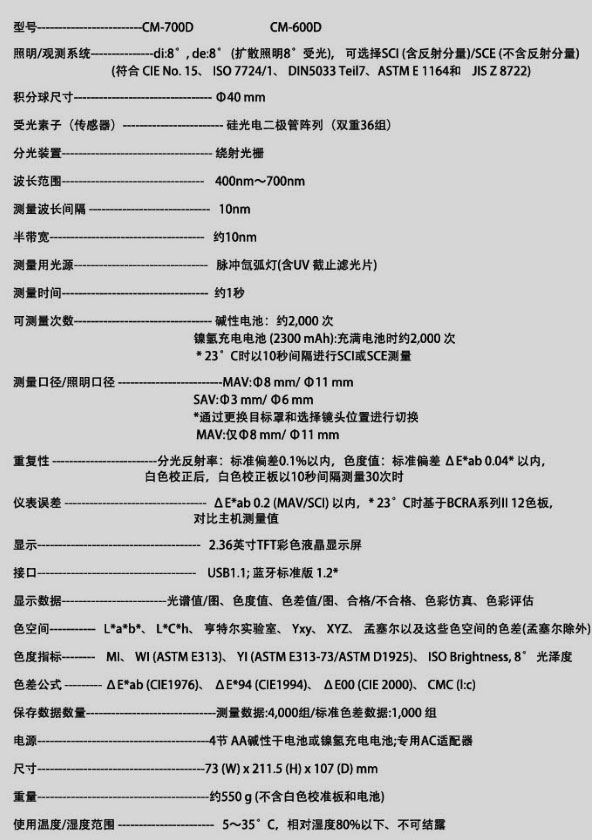 CM-700d/600d:結(jié)構(gòu)緊湊、輕巧便攜的分光測(cè)色計(jì),配有無(wú)線藍(lán)牙通訊功能及彩色LCD顯示,給您提供完美的簡(jiǎn)便及可操作性!